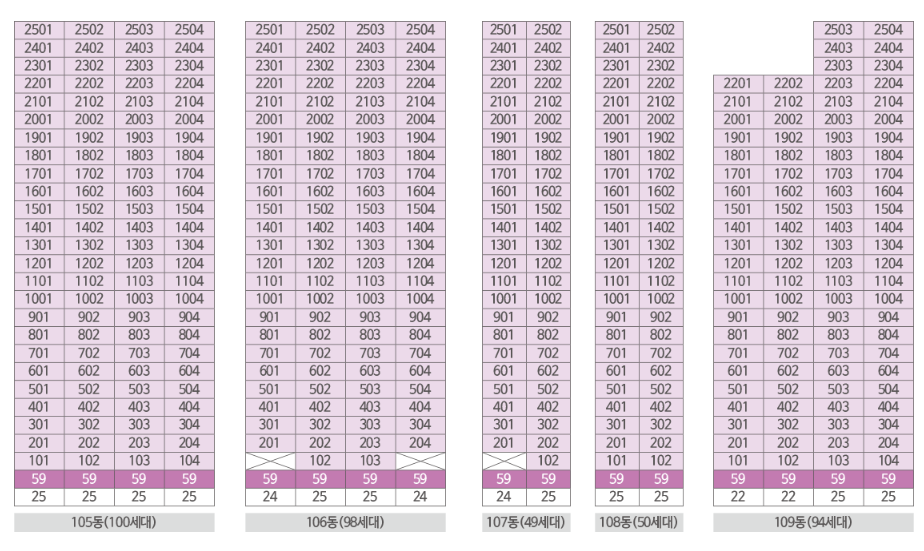 주택형(타입) 층구분 해당세대수 분양가격