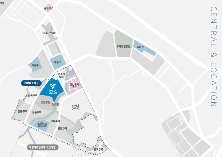 충청남도 계룡시 두마면 농소리 971번지 계용대실지구 1블록 총905세대 계룡 한라비발디 더센트럴이 탄생합니다.