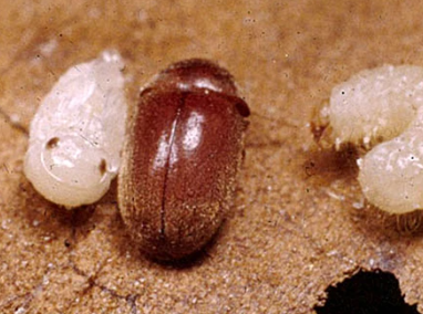 권연 벌레는 말린 담배 잎사귀의 해충이라고 해서 권연벌레라고 부르지만 시가벌레라고도 불립니다. 몸길이 2~4mm 정도 되며 긴 타원형으로 적갈색을 띠고 있습니다. 몸표면이 황갈색 작은 부드러운 털로 덮혀 있고 머리는 작고 앞에 가슴쪽으로 구부러져 있어서 위에서 볼때는 머리쪽이 보이지 않습니다. 곡물이나 상온식품,나무등에서 서식하며 눈에 보이기 시작하면 수천마리 이상 번식 할 수 있다고 합니다.